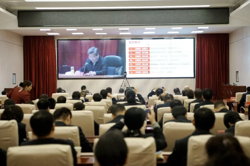 2月22日上午,全院干警认真聆听中央政法委秘书长陈一新对《中国共产党政法工作条例》的专题解读报告。