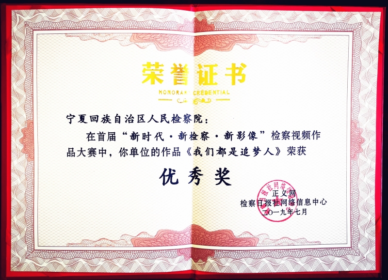 近日,自治区人民检察院新媒体微视频作品《我们都是追梦人》荣获首届“新时代·新检察·新影像”检察视频作品大赛优秀奖。