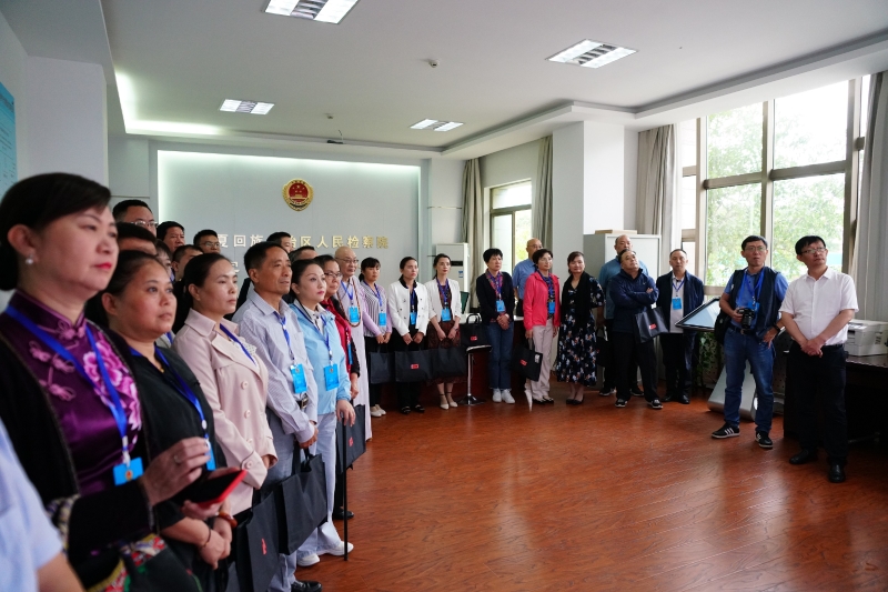 当天上午,在宁夏回族自治区人民检察院,代表们先后参观了12309检察服务中心和案件管理中心,观看了网上信访大厅、远程视频接访、案件信息管理平台的运行演示,近距离感受宁夏检察机关便民服务和信息化建设。自治区人民检察院党组书记、检察长时侠联向代表们介绍了宁夏的风土人情,并就宁夏检察工作情况进行了汇报。