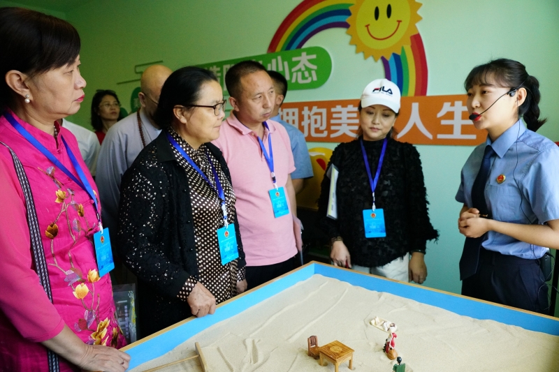 随后,代表们来到了石嘴山市大武口区未成年人司法社会服务中心,听取了大武口区人民检察院开展未成年人检察工作的情况汇报,详细了解了该院构建检察官、社工、志愿者与涉罪未成年人关系网络,建立运行“一站式”观护帮教机制的相关情况及成效。检察机关引入社会力量参与未成年人司法保护的各项举措,得到了代表们的认可,也引发了大家的热烈讨论。