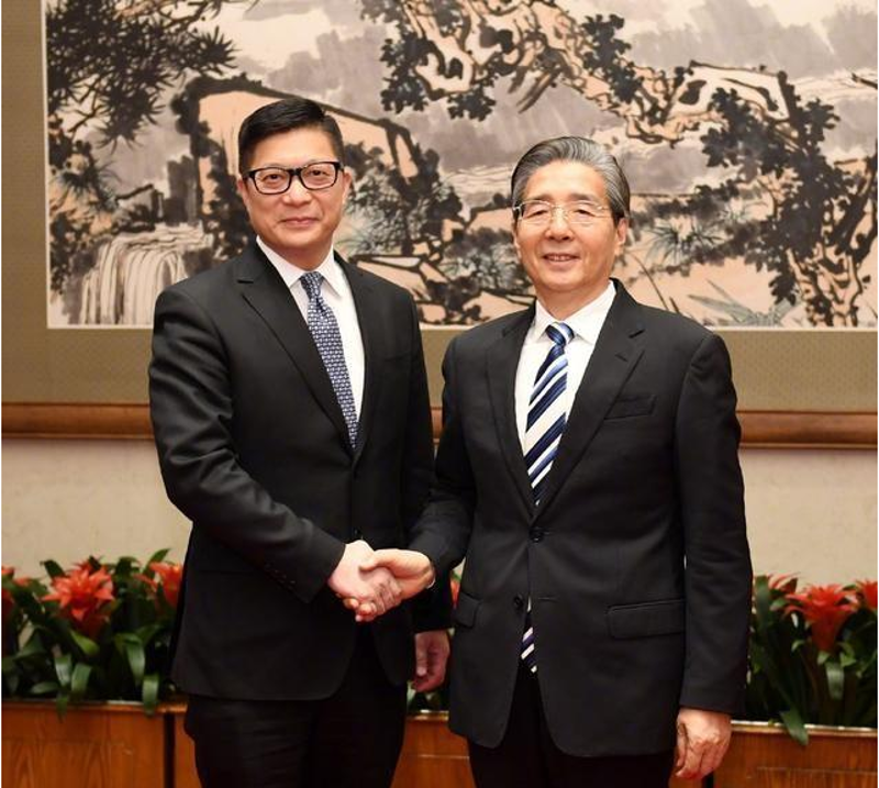 中共中央政治局委员、中央政法委书记郭声琨12月7日在京会见香港警务处处长邓炳强。