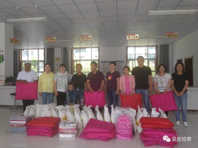 7月16日,吴忠市人民检察院机关党委带领党员干警来到共建社区--利通区富荣社区开展“党员助扶贫 圆梦微心愿”活动。在职党员自愿捐款3600余元,购买米、面、被子、床单、书包等生活用品和学习用品,为社区贫困家庭、空巢老人、留守儿童等困难群众圆了微心愿。