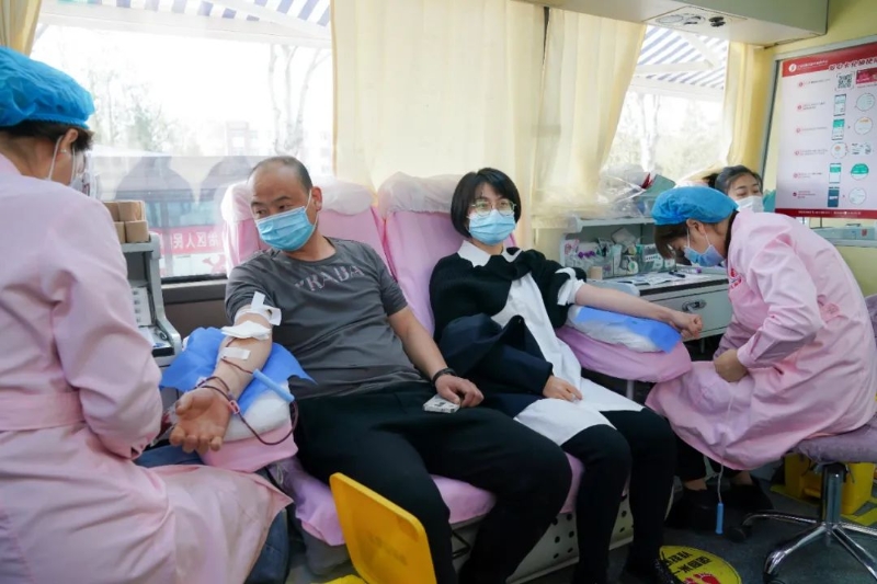 符合献血条件的党员干部充分发挥带头作用,积极响应,纷纷走上献血车加入义务献血的行列在医护人员的引导下,大家依次认真进行测温、查验健康码、填写表格、验血、抽血,整个过程井然有序,现场洋溢着浓浓温情