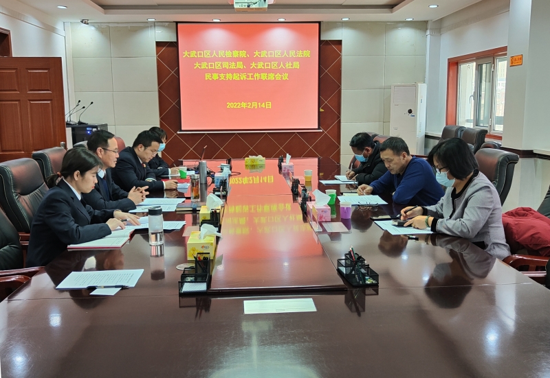 为进一步深化检察机关与审判机关、行政单位的沟通与协作,凝聚民事支持起诉工作合力,更好保护弱势群体合法权益。近日,大武口区检察院与区法院、区司法局、区人社局召开民事支持起诉工作联席会议。会议由院党组成员、副检察长韩宏军主持,相关单位负责人受邀参会。