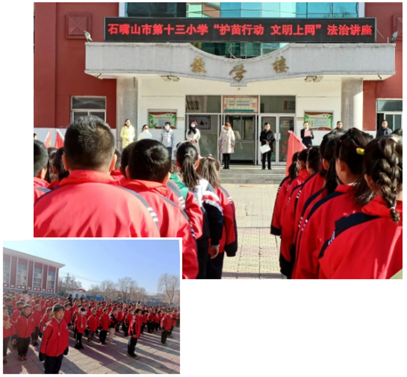为进一步加强校园安全,清理网络有害信息,提升全校师生的安全意识和网络素养,营造安全、健康、活力的校园氛围,2022年2月24日,大武口区人民检察院检察官蒙娜受邀参加石嘴山市第十三小学春季开学典礼,向全校师生开展了以“文明上网 远离游戏”为主题的“护苗行动”专题宣讲。通过引入真实案例呼吁学生们远离网吧,健康上网,文明上网。