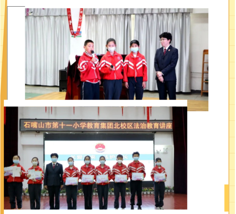 为积极落实《检察官担任法治副校长工作规定》,充分发挥检察机关领导干部兼任法治副校长的纽带作用,织密在校未成年人司法保护网络。4月27日,大武口区人民检察院党组书记、检察长刘爱娟走进石嘴山市第十一小学教育集团北校区开展“关爱未来 法护成长”法治进校园活动,提高青少年知法、懂法、守法的自觉性、主动性。
