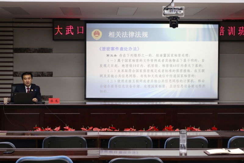 六、4月15日上午,院办公室四级主任科员张龙为聘用制书记员进行保密知识培训。