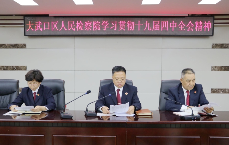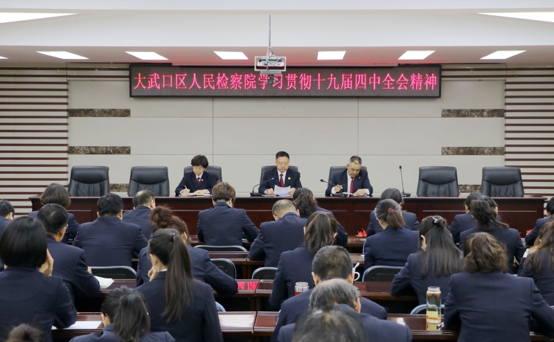 11月6日下午,大武口区人民检察院召开全院干警大会,组织全体干警学习贯彻党的十九届四中全会精神。
