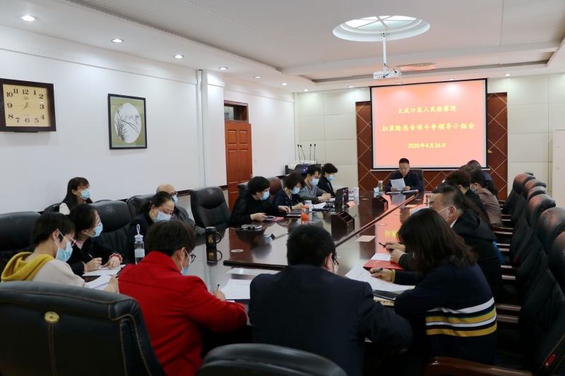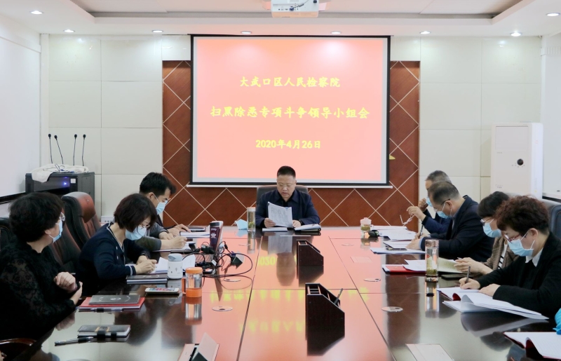 为贯彻落实中央、自治区、市、区和上级院扫黑除恶专项斗争会议发件精神,部署扫黑除恶重点工作任务,全力推进“六清”行动,2020年4月26日下午,大武口区人民检察院召开党组会、扫黑除恶专项斗争领导小组会。院党组书记、检察长金立栋主持会议,扫黑除恶专项斗争领导小组及扫黑办全体成员参加会议。
