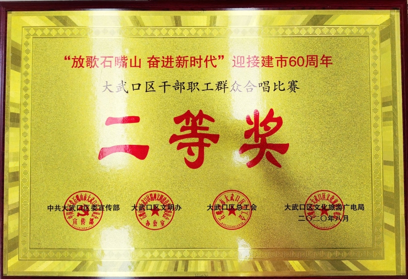 8月17日下午,大武口区人民检察院组织干警参加“放歌石嘴山,奋进新时代”迎接建市60周年大武口区干部职工群众合唱比赛,充分发扬逢先必争、创先争优的优良作风,在大武口区12支参赛队伍中脱颖而出,评分排名第二,荣获“二等奖”。