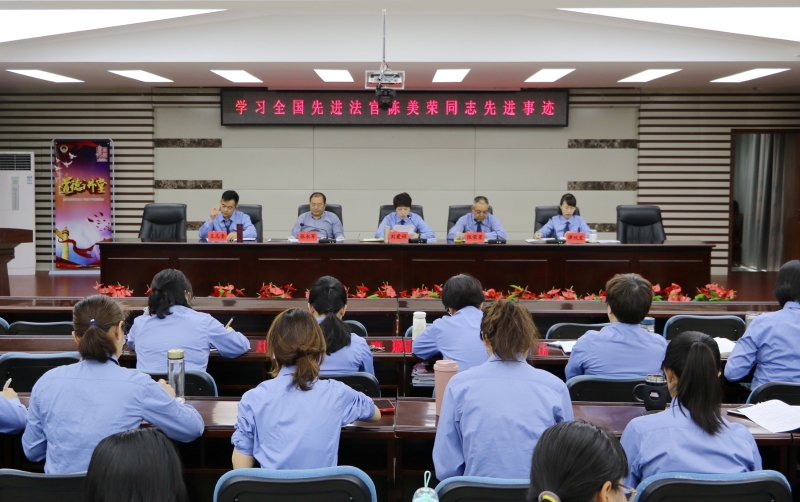 从正面典型中传承学习。全院干警首先观看了微电影《心会跟爱一起走》,学习了全国模范法官陈美荣同志先进事迹。大家表示,陈美荣同志的先进事迹充分展示了新时代政法队伍应有的责任与担当,要汲取榜样的力量,对照先进找差距、补短板。