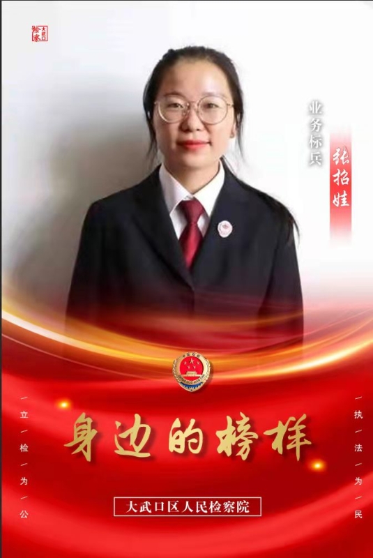 张招娃,女,1992年1月出生,大学本科,中共党员,2015年10月进入石嘴山市大武口区人民检察院工作,现为石嘴山市大武口区人民检察院第二检察部检察官助理,长期从事刑事案件审查起诉和审查逮捕工作。先后获得优秀公务员、先进工作者、优秀共产党员等荣誉。
