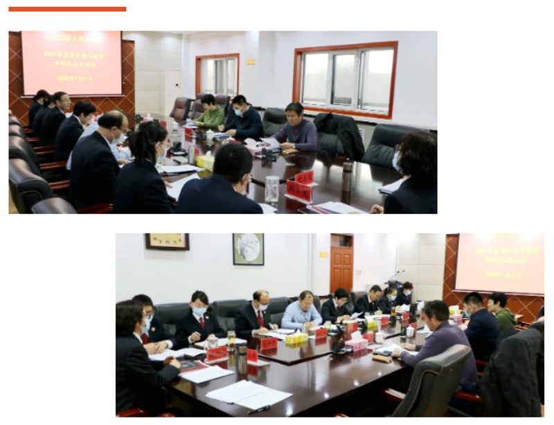 近日,区检察院召开2021年度党史学习教育专题民主生活会。院党组书记、检察长刘爱娟主持会议,全体党组成员参加会议。区委常委、政法委书记孙勤龙,石嘴山市检察院党组成员李洁,区委党史学习教育第二巡回指导组组长石海彦到会指导。