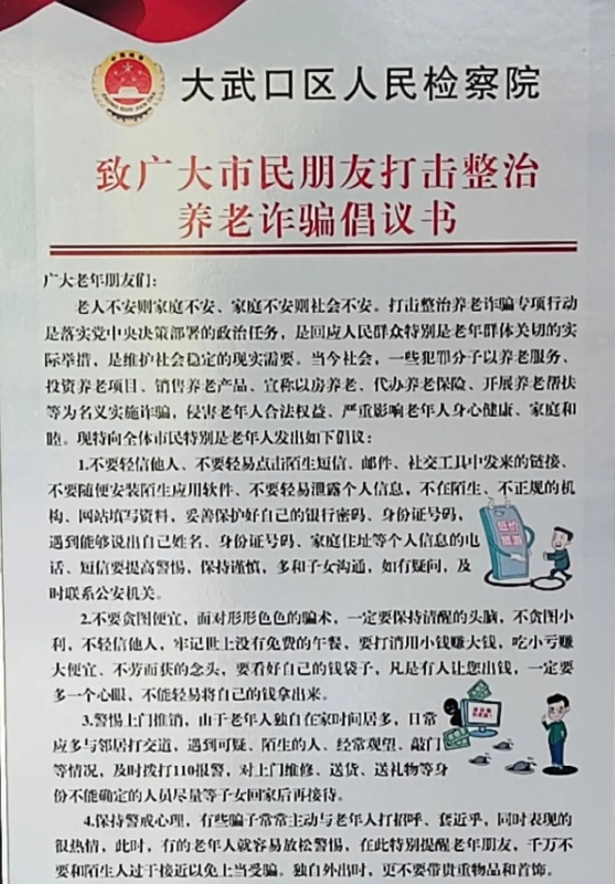 为进一步打击整治养老诈骗违法犯罪行为,确保打击整治养老诈骗专项行动落到实处,大武口区人民检察院开展“五个一”活动,推动打击整治养老诈骗专项行动走深走实。