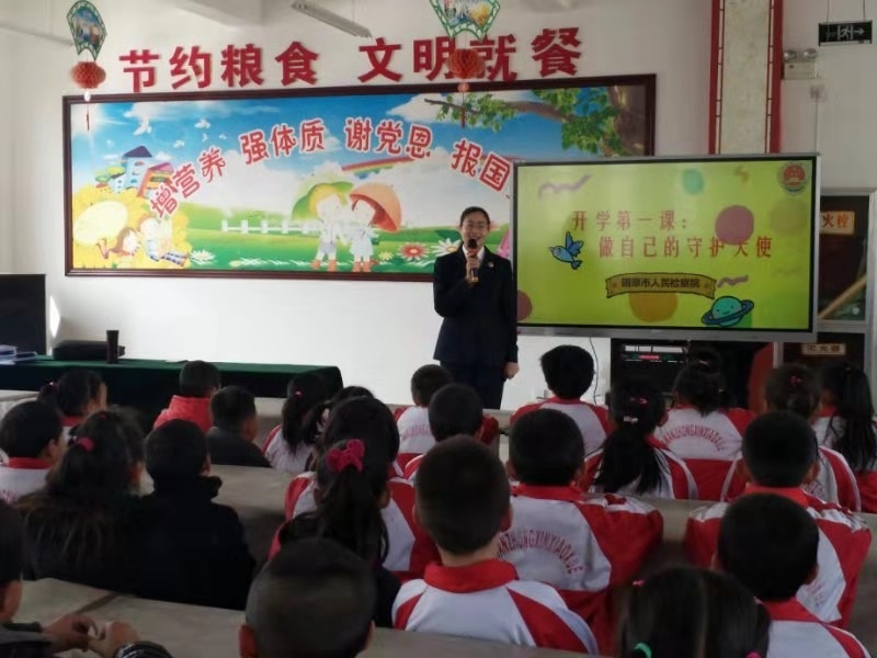 为泾源县大湾小学讲了一堂法治课,赠送《未成年人安全自护手册》、《家长监护职责手册》等,提升农村留守儿童学生的法治和自我保护意识。