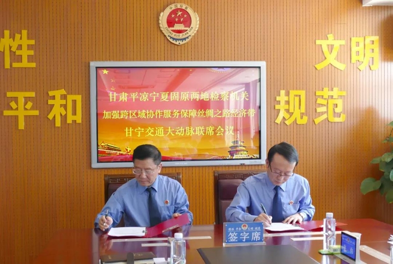 会议会商签订了《关于加强区域检察协作服务保障丝绸之路经济带甘宁交通大动脉的意见》。平凉市检察院党组副书记、常务副检察长牛青霞对《意见》起草情况作了说明,指出两地检察机关要深刻认识服务保障甘宁交通大动脉在丝绸之路经济带建设中的重要作用,着力构建好跨区域检察协作新格局,凝聚各方共识,形成推动工作的强大合力,不断优化服务保障丝绸之路经济带甘宁交通大动脉跨区域检察协作机制,确保检察机关能够依法全面履职尽责。