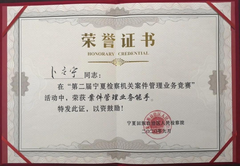 9月30日,第二届全区检察机关案件管理业务竞赛在银川落下帷幕。此次竞赛是检察机关内设机构改革后组织的一次全员大练兵、大比武,更是对全区案管队伍的全面检阅。来自全区检察机关的20名案管精英们,经过三天的理论测试、实务操作、汇报答辩等多个环节的激烈比拼,固原市检察机关代表队荣获“第二届宁夏检察机关案件管理业务竞赛优秀组织奖”,安金龙、虎芸芸、卜立宁三位同志均荣获“第二届宁夏检察机关案件管理业务能手”奖。获奖率达到了100%,成绩突出。