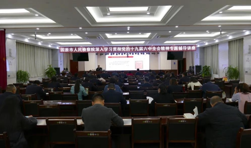 为进一步把学习宣传贯彻党的十九届六中全会精神引向深入,12月10日,固原市人民检察院邀请市委宣讲团成员、市委党史研究室副主任苏明珠,为全体检察干警作党的十九届六中全会精神专题辅导讲座。会议由党组副书记、副检察长李永花主持。