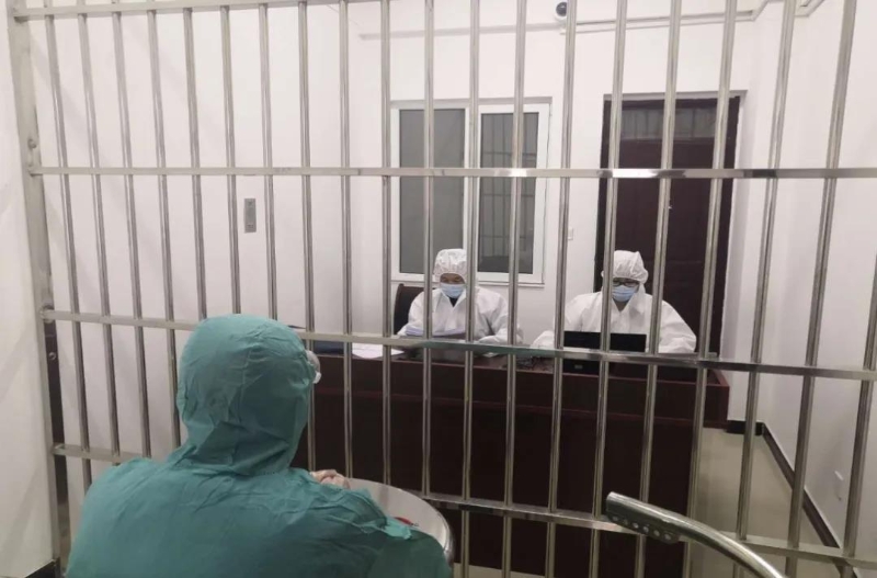 三是防护措施到位。为保证提审的快速、安全进行,案件承办人在提审前准备好相应的防护措施,在进入看守所提审时由工作人员进行消毒、体温测量,穿戴一次性防护服、佩戴防护口罩、进行测温消毒后进入讯问室。由驻所检察室监督,看守所提前对讯问室进行消毒,由值班警察为犯罪嫌疑人测温、消毒,穿戴好防护服、口罩、手套、护目镜等防护装备,做好防护措施。讯问结束后,再次为犯罪嫌疑人测温、消毒,送回监舍。