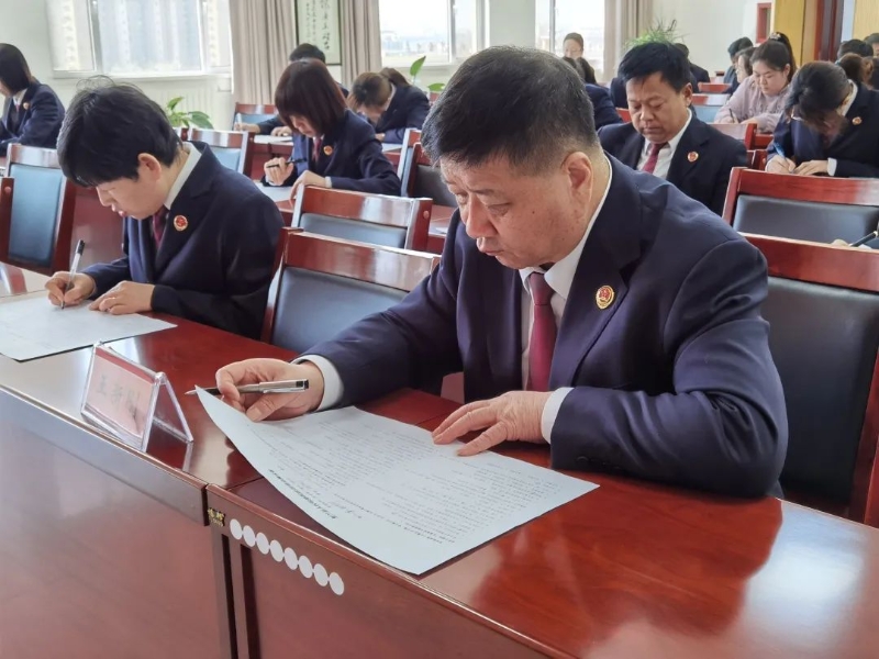 为推动党史学习教育、政法队伍教育整顿学习教育工作走深走实,提高干警思想认识,检验、巩固干警阶段性学习成效,3月23日,贺兰县人民检察院组织开展党史学习教育暨政法队伍教育整顿知识测试,院党组书记、检察长张铁轮,党组成员及全体干警参加测试。