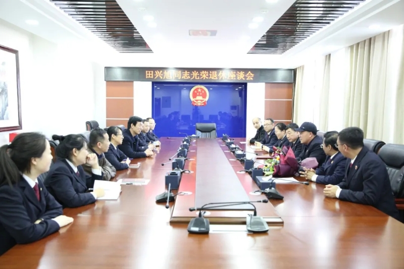 欢送会结束后,院党组班子及中层干警参加了田兴旭同志光荣退休座谈会。