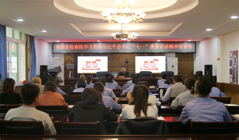 为持续深入学习贯彻习近平总书记“七一”重要讲话精神,深刻把握重要讲话中蕴含的新思想、新观点、新论断、新要求,教育引导干警感悟思想伟力,汲取精神力量,不断推动党史学习教育走深走实。9月3日,海原县人民检察院召开学习贯彻习近平总书记“七一”重要讲话精神宣讲会,邀请县宣讲团成员、县委党校讲师洪亮同志为全体干警作专题宣讲报告。