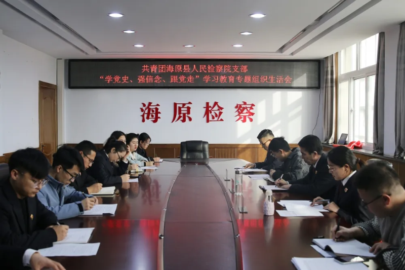 12月13日,共青团海原县人民检察院支部召开“学党史、强信念、跟党走”专题组织生活会,全体团员参加会议,团县委有关领导应邀到会指导。