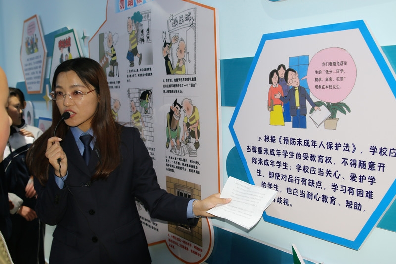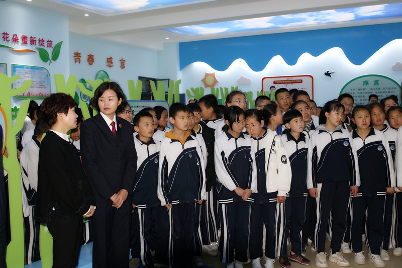 启动仪式结束后,县城各学校负责人第五中学全体师生立刻开启了在“青少年法治教育实践基地”的“第一节课”,由检察官带领同学们走进基地进行参观学习。一进基地,同学们立刻被里面新颖的法律氛围所感染,基地内通过微电影展播、实物展示的法治教育模式,让全体师生能切切实实地学到法律、感受法律。大家纷纷表示,参观法治教育基地,自己内心有了很深的感触,决心在以后的学习生活中自觉守法、遇事找法、解决问题靠法。