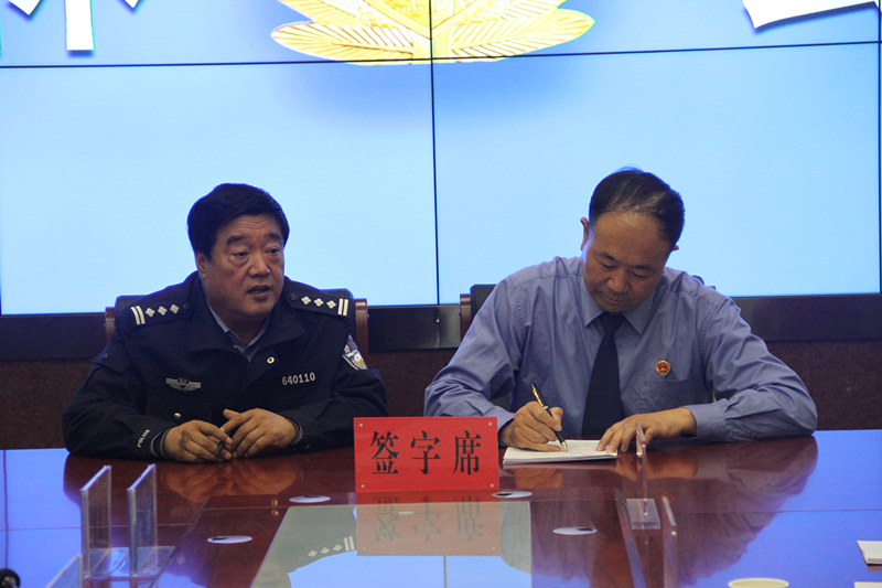 李宏涛检察长和于志伟局长会签了《关于在固原市公安局六盘山国家级自然保护区森林分局设立检察官监督办公室的实施意见》。