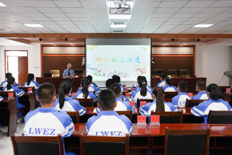 参观结束后,未检干警“小敏姐姐”以校园欺凌为主题,为同学们开展法治课。由校园欺凌的视频为切入点,引导学生共同讨论什么是校园欺凌、校园欺凌的表现形式有哪些、刑事犯罪的年龄为多大。通过问答形式,同学们踊跃发言,各抒己见,在互动中掌握了肢体欺凌、言语欺凌、社交欺凌、网络欺凌等校园欺凌的形式和如何面对校园欺凌。结合真实案例进行深入剖析,进一步提高同学对校园欺凌的防范意识。