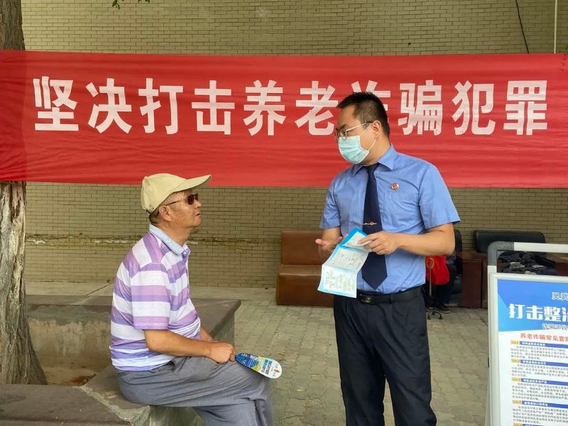 为切实提高老年群体对养老诈骗的防范意识,推进打击整治养老诈骗专项行动走深走实,8月15日,灵武市检察院组织干警到辖区尚品苑小区进行防范养老诈骗宣传活动。