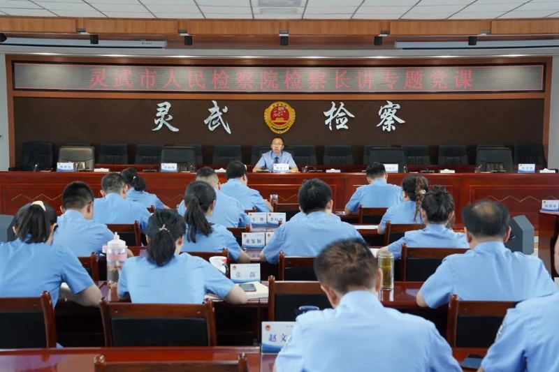 为深入开展党史学习教育,庆祝建党100周年,6月28日下午,灵武市检察院党组书记、检察长魏宏宇以《从百年辉煌党史中汲取磅礴力量 在蹄疾步稳实干中成就检察事业》为题,围绕习近平总书记关于政法工作重要指示批示精神,结合党史、检察史学习教育及个人思考体会,从始终做到心中有党、始终做到心中有民、始终做到心中有责、始终做到心中有戒四个维度,为全体干警上专题党课。
