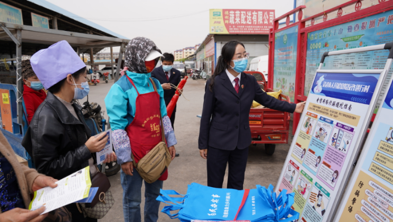 4月21日下午,在熙熙攘攘的集市中,有一个新开设的摊位虽然面积不大,却是最抢“风头”的摊位,摊主就是灵武市人民检察院的检察干警。为切实营造“全民反诈”宣传氛围,保证人民群众财产安全,反诈也来“赶集”啦!