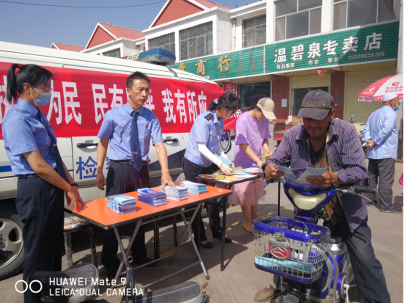 为进一步宣传检察机关落实“群众信访件件有回复”工作要求,及时化解社会矛盾纠纷成效,扩大社会认知度,提升人民群众对检察工作的认同感,6月9日,平罗县人民检察院干警走入平罗县黄渠桥镇集市,开展法治宣传工作,拉开了我院“民有所呼、我有所应——群众信访件件有回复”新时代检察宣传周序幕。