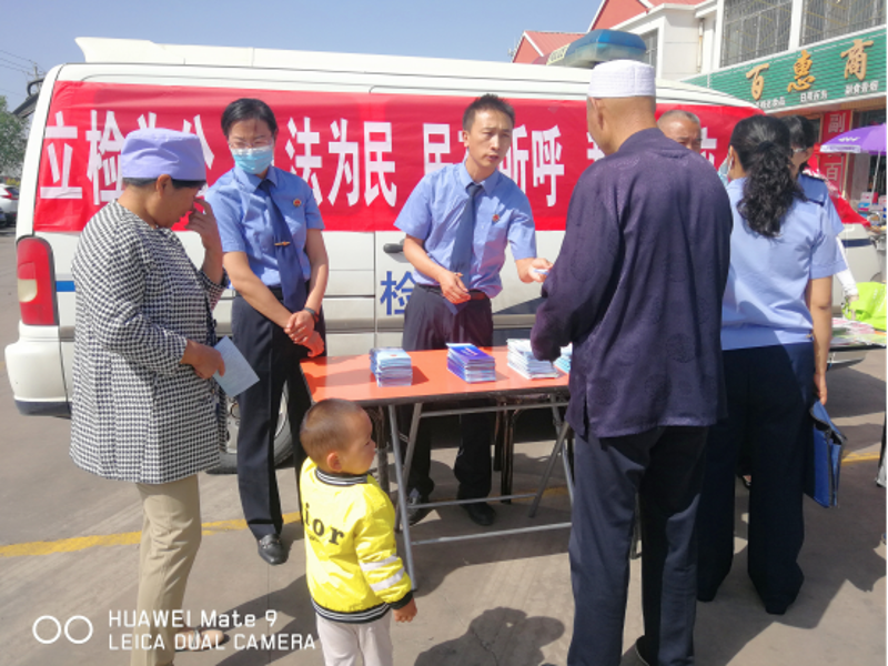 6月9日,平罗县人民检察院干警走入平罗县黄渠桥镇集市,通过发放宣传彩页,现场法律问题解答,向群众宣传12309检察服务中心职能及群众信访件件有回复工作制度。