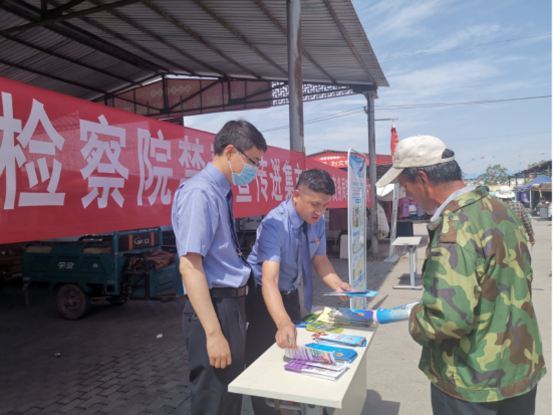 6月23日下午,我院干警走入平罗县姚伏镇集市,开展禁毒宣传工作,切实推动毒品预防宣传教育工作走向深处。活动通过设置毒品仿真品展台、现场咨询、发放禁毒宣传资料等形式向过往的群众进行了宣讲,检察干警向群众普及禁毒相关知识,详细介绍了毒品对于个人、家庭及社会的危害,呼吁群众远离毒品、珍爱生命,增强禁毒法律意识,提高拒绝毒品和抵制毒品的能力。在宣传的过程中、检察干警对于群众咨询的法律问题及时给予了耐心解答,并鼓励广大群众积极检举揭发毒品违法犯罪行为,争当拒毒、防毒的宣传员。