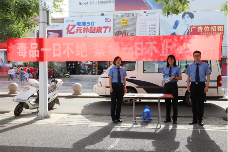 为积极履行检察机关禁毒普法责任,巩固深化禁毒预防宣传工作成效,按照平罗县禁毒委关于在全县开展“领导干部禁毒一日”主题实践活动的部署要求,不断加强毒品预防教育力度,进一步提高全民拒毒防毒和参与禁毒意识,平罗县人民检察院结合工作职能,在6.26国际禁毒日期间积极组织开展形式多样的禁毒法治宣传教育活动,取得了良好效果。