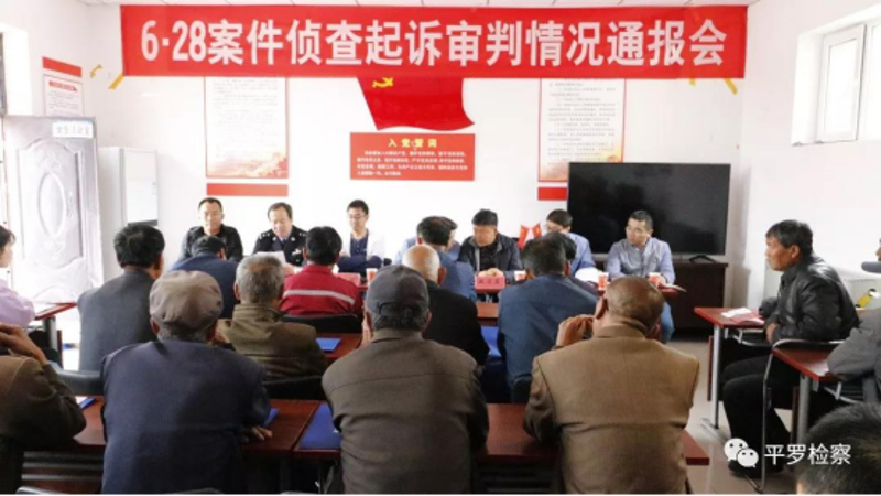 5月7日上午,平罗县人民检察院参加了由县政法委组织的李某国“村霸”案件侦查起诉审判情况通报会,会议在平罗县头闸镇永惠村村部召开,头闸镇永惠村两委班子成员及部分村民代表共40余人参加通报会。