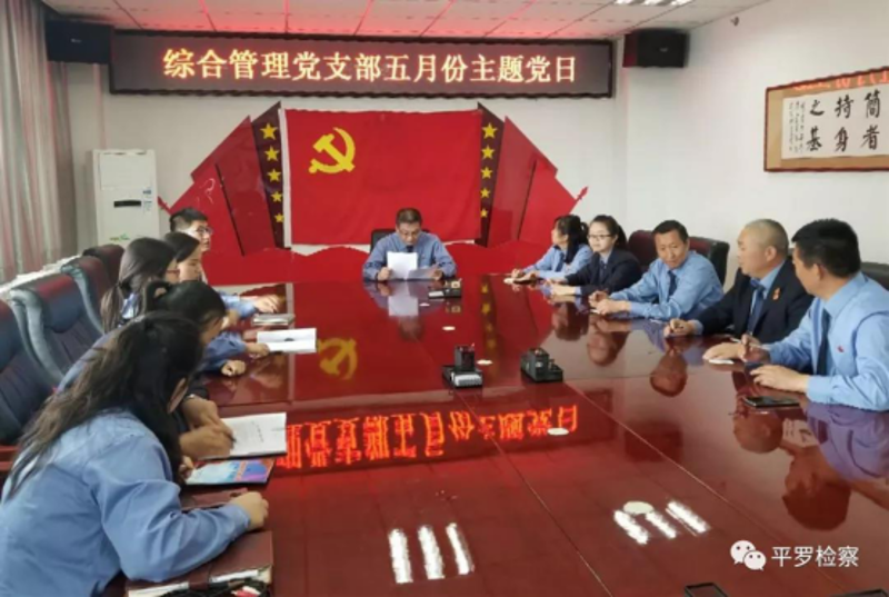 5月10日,平罗县人民检察院综合管理党支部和检察监督党支部开展了5月份支部主题党日,活动按照“5+X”的规定动作有序进行。在完成了温誓词、诵党章、学讲话、讲党课、缴党费5个规定动作后,全体党员干警集中观看了反腐败纪实专题片《红色通缉》第1集引领。