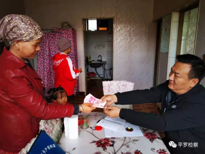 在通伏乡永兴村,党组书记、检察长李洁一行,走访对口帮扶的10户贫困户,以真情与贫困户开展交流,主动倾听了解他们的需求,并为他们送去了大米、面粉、食用油等生活物资。入户过程中得知有7名学生正在义务教育阶段,李洁检察长代表平罗县人民检察院,为7名学生发放教育扶资金共计3000元,勉励孩子们努力学习,勤奋上进,牢记党和国家的培养,为祖国的繁荣发展贡献自己的力量。