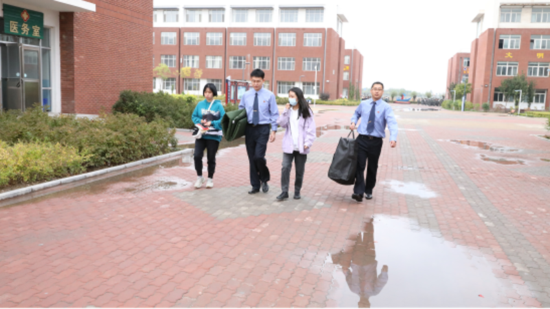 脚步没有停止,办完入学手续后,在老师的引领下,在校务处用助学金为她购买了保险,在教学楼为她购买了被褥、校服和工装,一路下来,红艳艳的笑脸始终挂在马国欣的脸上,能重返校园让她倍感幸福和珍惜。看到马国欣试穿校服的那一刻,检察院的工作人员和老师的脸上都露出了笑脸。在办完所有手续后,李洁检察长将马国欣送到了宿舍。在宿舍楼下,李洁检察长再次叮嘱马国欣:“要听老师的话,专心致志,好好学习,我们会不时向学校了解你的学习生活情况,监督你学习的。要常怀一颗感恩之心,国家政策这么好,学费和住宿费全免,一定不要辜负学校和检察院对你的帮助和关心,如果遇到任何困难都可以给我打电话。”淅淅小雨后更添别情,马国欣走上宿舍楼,不时回头向我们挥手告别......