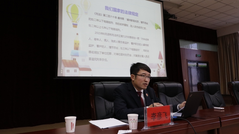 平罗县检察院“法治进校园”巡讲员李彦飞结合当前虐童热点事件,从其中可能涉及的刑事犯罪、幼儿教师的责任和担当以及幼儿心理的特殊性等三个方面开展普法宣讲。李彦飞对虐待儿童可能构成的虐待罪、猥亵儿童罪、强奸罪、故意伤害罪等罪名进行了详细解读,包括对法律条文的理解,每个罪名的犯罪构成与量刑幅度、常见犯罪行为和典型案例的介绍。在进一步加强幼师职业质素方面,运用PPT形式介绍了国内外科学育儿的一些先进做法,建议要让法律有“牙齿”,要让课堂有“阳光”,要让幼师有“素质”,提醒幼儿教师要用行动守住幼儿教育的底线,用爱心去创造温暖欢乐的学习环境,用智慧去帮助每一个孩子健康成长。