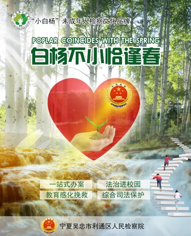 白杨树是西北地区极为普通的树种,只要有草的地方,就有白杨树傲然耸立。白杨树又是不平凡的一种树,她是树中的伟丈夫,根深干壮,耸立在祖国的大西北,不屈不挠对抗着西北风!小白杨虽是一棵正在茁壮成长的幼树,却象征着向阳而生、日趋强大的新生力量。利通区人民检察院未成年人检察团队以“小白杨”工作室命名,用白杨树的挺拔和笔直,比喻团队积极履行法律赋予的职责和使命,维护公平正义,力求上进的奋斗精神;又喻这个冉冉新生、成长、壮大的未成年人保护司法团队,将用心用情用力去守护每一棵正在成长的“小白杨”。