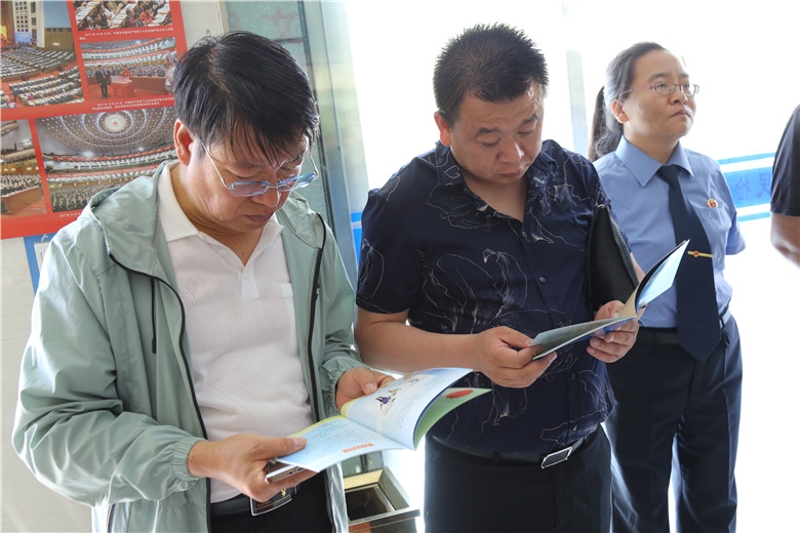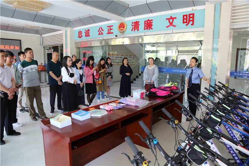 代表们首先视察和参观了沙坡头区检察院未成年检察工作宣传展板,在一楼大厅,代表们对摆放在大厅的自行车、宣传标语、宣传资料等宣传装备,产生了浓厚的兴趣,纷纷驻足观看,“早在2016年,我院就组建了沙坡头区检察院自行车法治宣传队,几年来,我院法治宣传队深入中卫两县一区中、小学开展法治讲座,4万多名教育管理人员、老师、学生接受了法治教育,2017年底我院就已经实现沙坡头区所有中小学法治宣传的全面覆盖,目前我院正在开展“幼童保护”专项行动,组织宣传人员深入辖区幼儿园开展法治讲座,重点对幼儿教师、管理人员以及幼儿家长进行法治教育。”解说员向代表们介绍道。