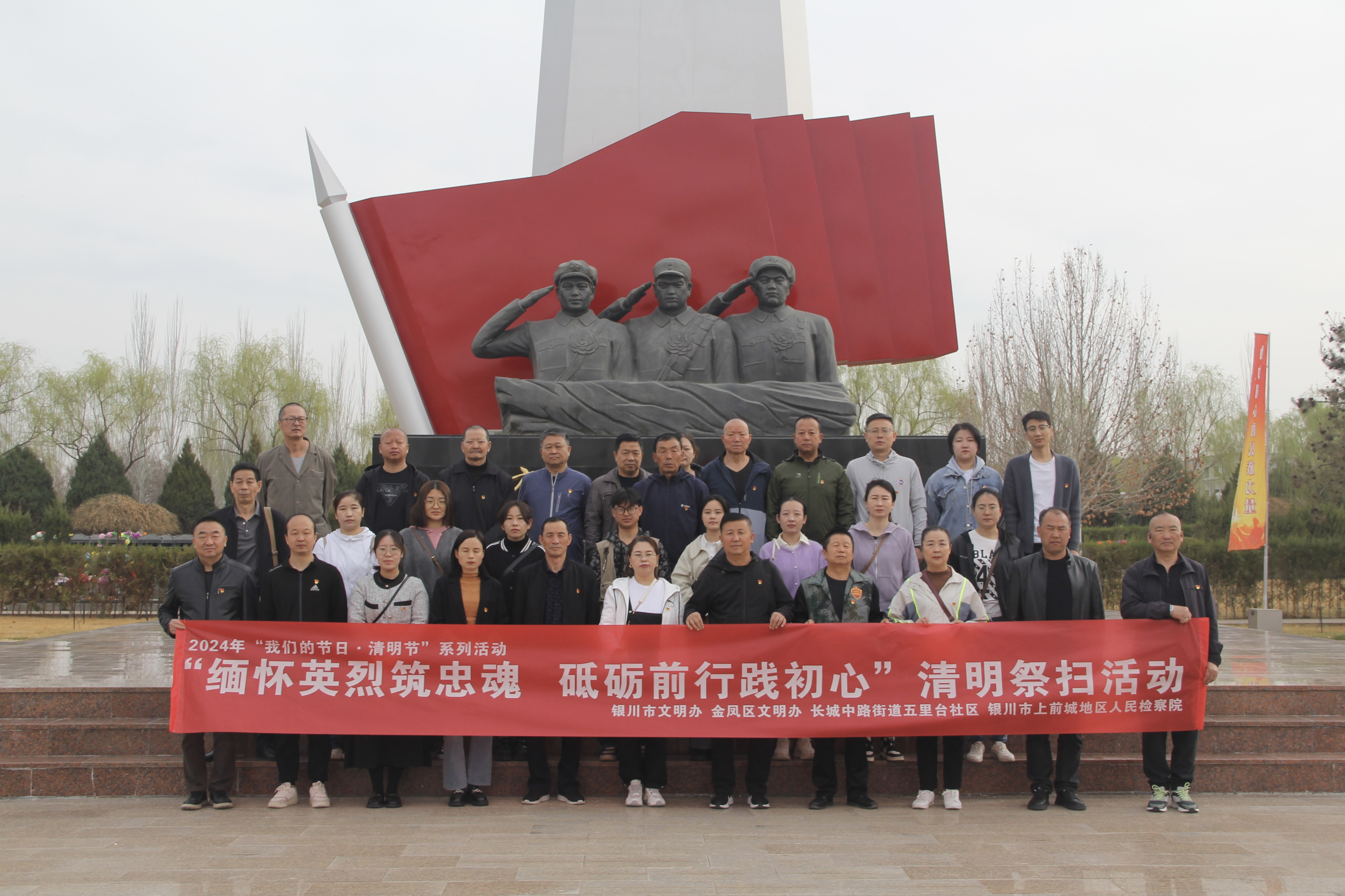 为深入学习贯彻习近平文化思想,大力弘扬爱国主义为核心的民族精神,不断增强检察干警的民族使命感和历史责任感,推动理想信念教育制度化常态化,4月1日上午,银川市上前城地区人民检察院联合五里台社区前往松鹤陵园银川军魂园红色主题纪念园开展以“缅怀英烈筑忠魂,砥砺前行践初心”为主题的清明节祭扫活动。