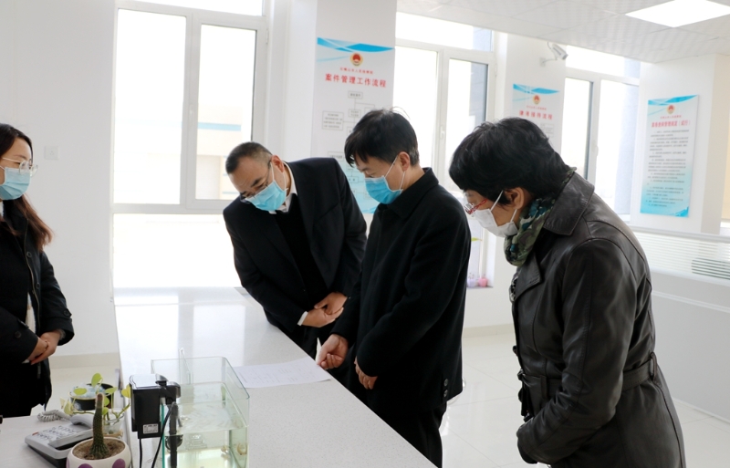 潘立清副主任先后查看了院内案件管理中心、12309检察服务中心和机关食堂,现场观看了运用远程视频与基层院连线会商案件。每到一处,潘立清主任都认真询问工作人员近期是如何做好疫情防护,以及各项业务工作的进展情况,并细心叮嘱大家在疫情防控吃劲的关键阶段,一定要绷紧思想的弦,不可有丝毫的松懈和麻痹。