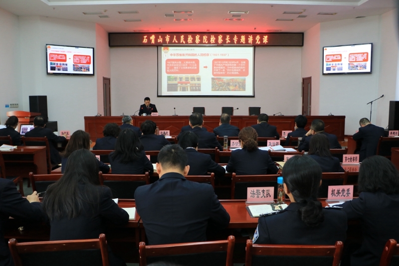 “今年是建党100周年,也是人民检察制度创立90周年,可以说90年的人民检察史,就是党探索社会主义法治建设规律的历史,就是人民检察事业同党的事业同呼吸共命运的历史……”3月12日,石嘴山市人民检察院党组书记、检察长曹湘宁以《认真学习好“红色检察”史,庚续传承好“红色基因”》为题,为全院干警上了一堂入脑入心的党课。