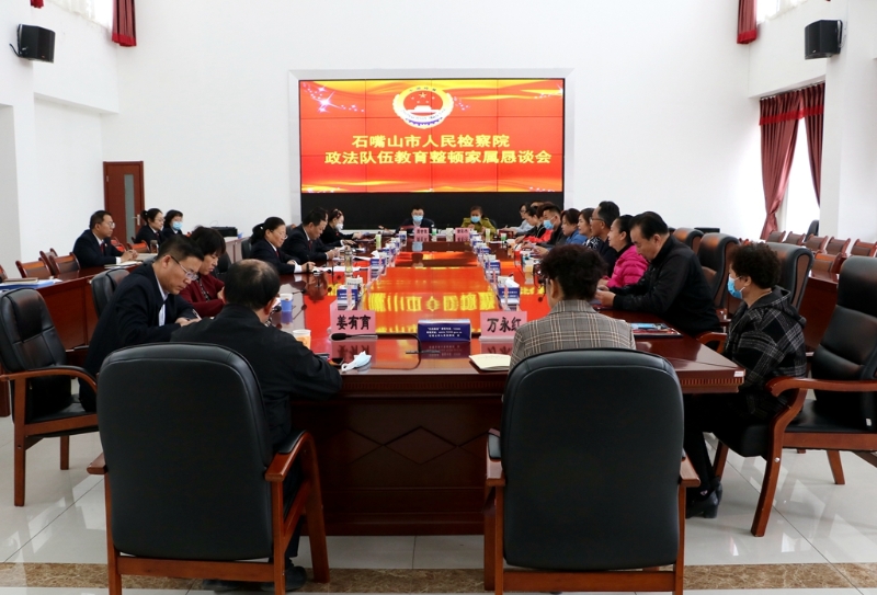 为深入推进政法队伍教育整顿查纠整改,坚持“自查从宽、被查从严”政策导向,充分发挥家庭“后方”监督力量,全方位筑牢干警拒腐防变思想防线,4月19日,石嘴山市人民检察院召开了政法队伍教育整顿家属恳谈会。
