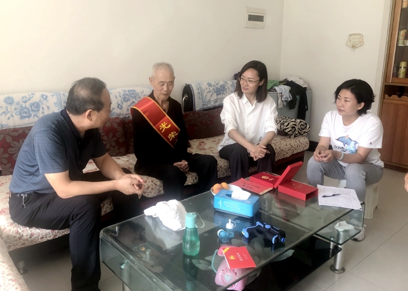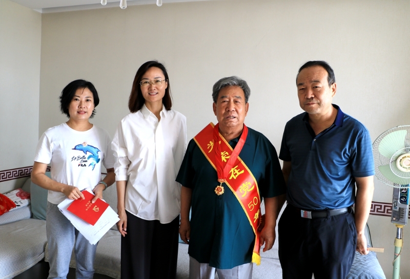 6月29日,市检察院党组成员、政治部主任杜春红、机关党委书记张学文走访慰问了市检察院党龄50年以上的退休老党员,在老党员家中为他们披绶带、颁发了“光荣在党50年 ”纪念章并送上慰问金。