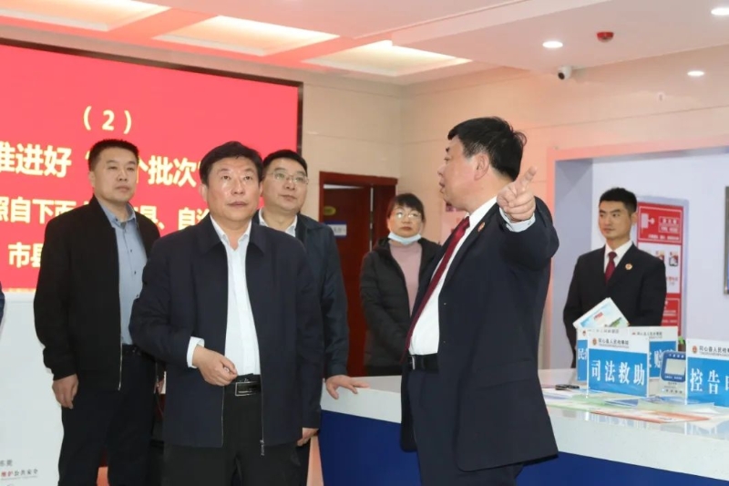 自治区政法队伍教育整顿第三驻点指导组一行实地查看我院12309检察服务中心、案件管理办公室、检察听证室等,深入各检察业务部门与检察干警交谈、交流,通过听取汇报、现场询问、个别谈话、查阅档案资料等方式,详细了解同心县人民检察院队伍教育整顿启动以来开展学习教育“五项教育”情况。